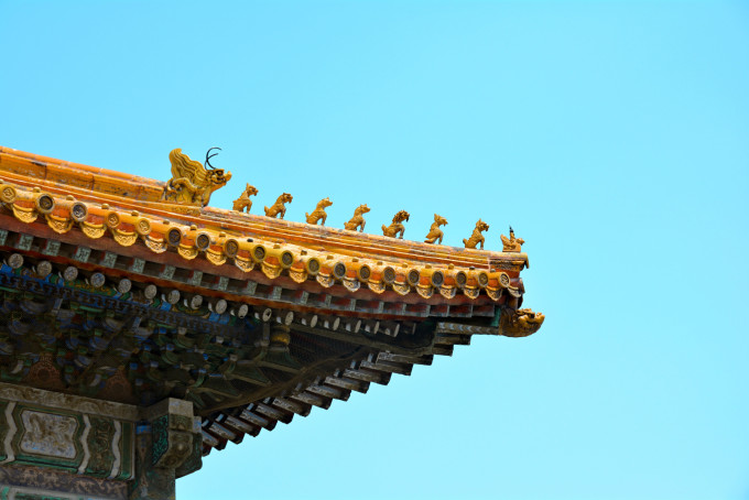 觉得各个宫殿的脊兽都非常有意思~个数从三个五个七个九个到十个不等,其中太和殿的十个脊兽是世界数目最多的。