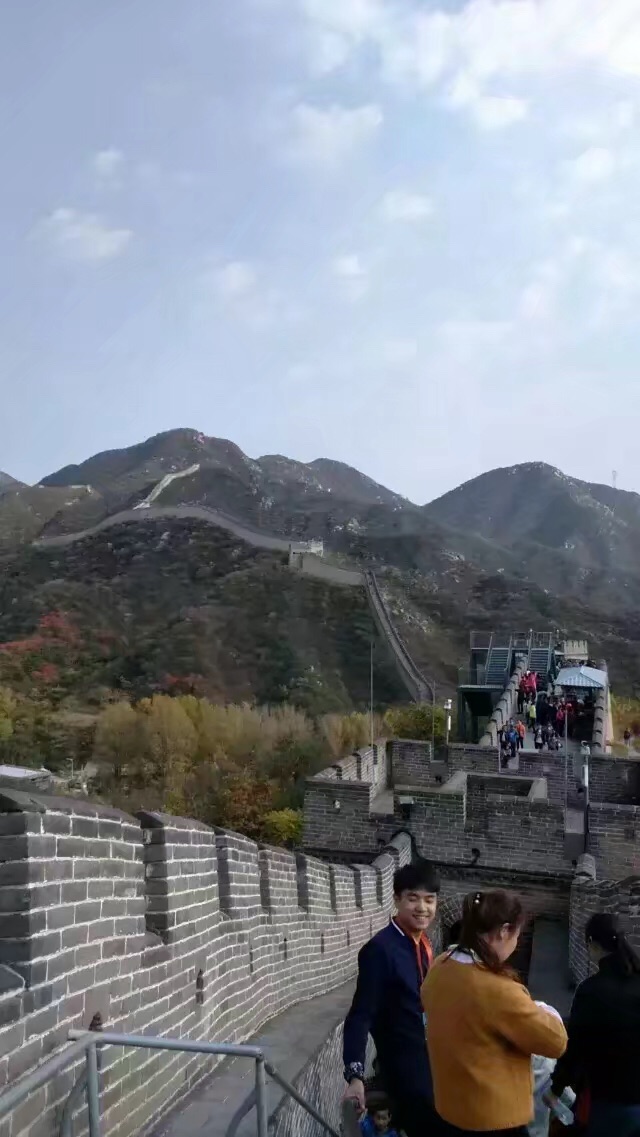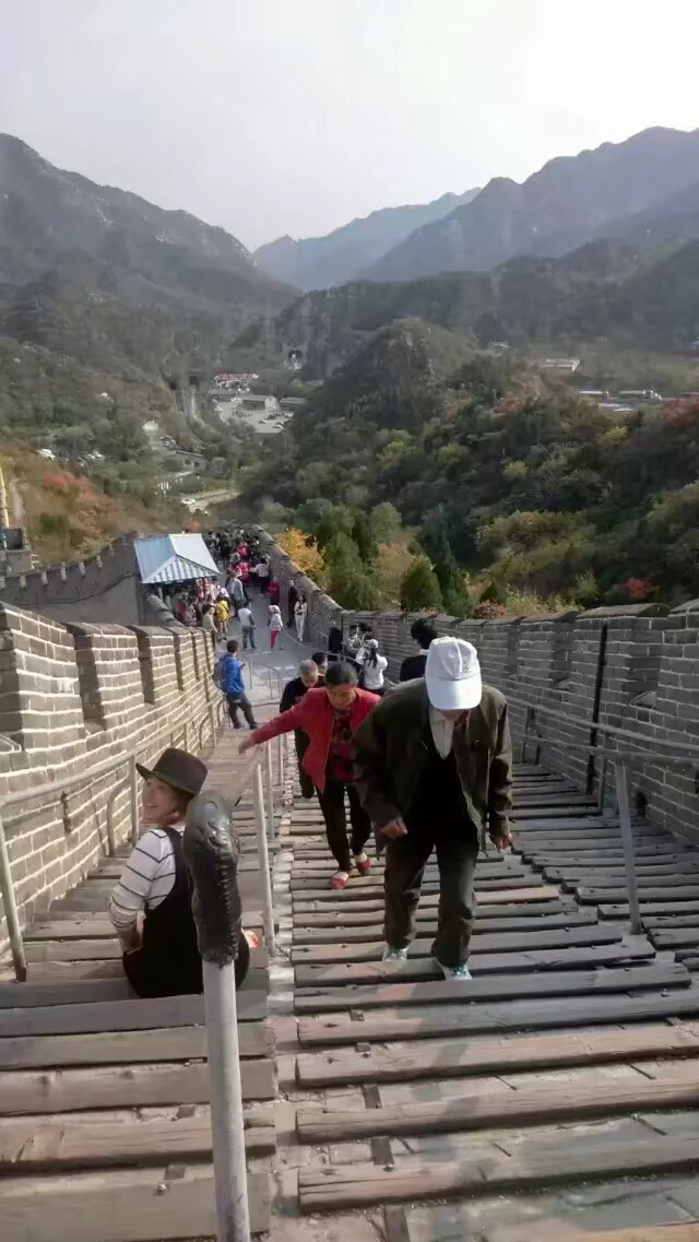 长城的雄,长城的险,长城的巍峨壮观,在我攀爬的两个半烽火台中就深有体验,坡度陡峭,台阶与台阶间距离很大,上的时候难,下的时候更难,所有人都是抓紧栏杆慢慢往下走。极目四望,长城秋色渐染,令人心怡,如果再推后半月来之,长城美景定令人心醉。