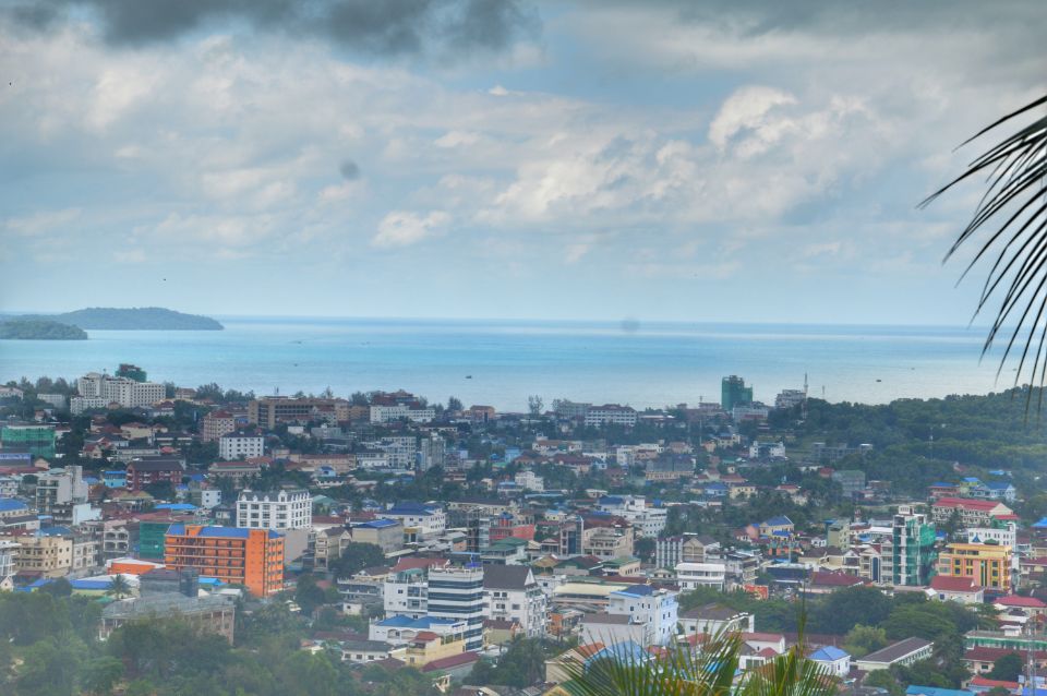 不过,来到这儿的最重要目的是看西港全景,寺庙依山而建,所处位置基本是西港地区的制高点。我们登上面朝大海的露台,遥览西港。天空飘起细细的小雨,远处的海岸线稍微有些模糊,临近大海的地方有许多正在施工的建筑,环海而建的西港正经历着从渔村向城市的转型。如果政局稳定,我们可以预想到十多年后的西港将彻底撕下渔村的标签,栋栋豪华酒店的落成与相关旅游设施的完善必定使它成为越来越多的旅游者的下一个目的地。
