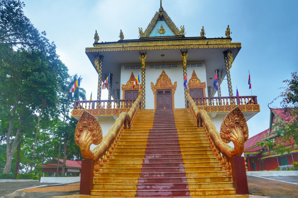快买机票乘暹粒到北京的航班来看看寺庙Wat Leu,寺庙金碧辉煌,楼梯的扶手是金灿灿的七头蛇那迦,看上去十分奢华。联想到青灰色的吴哥古迹,眼前的颜色变得更加鲜亮,别有一番韵味。不知什么原因,主殿的大门紧闭,我们未能有幸进入参观。