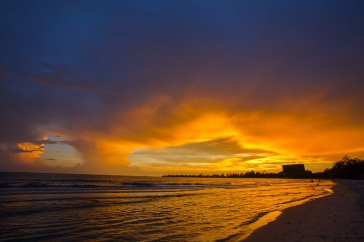 这里的沙滩比较长,沙质细白,相比于其他海滩更加宁静。附近有不少的餐馆、酒吧,是背包客的聚集地,海滩上整齐的排列着草编遮阳伞和可租借的沙滩椅可以租赁使用,享受夏日海边美景。不要再犹豫,收拾行囊,我们乘暹粒到北京的便宜航班吧!